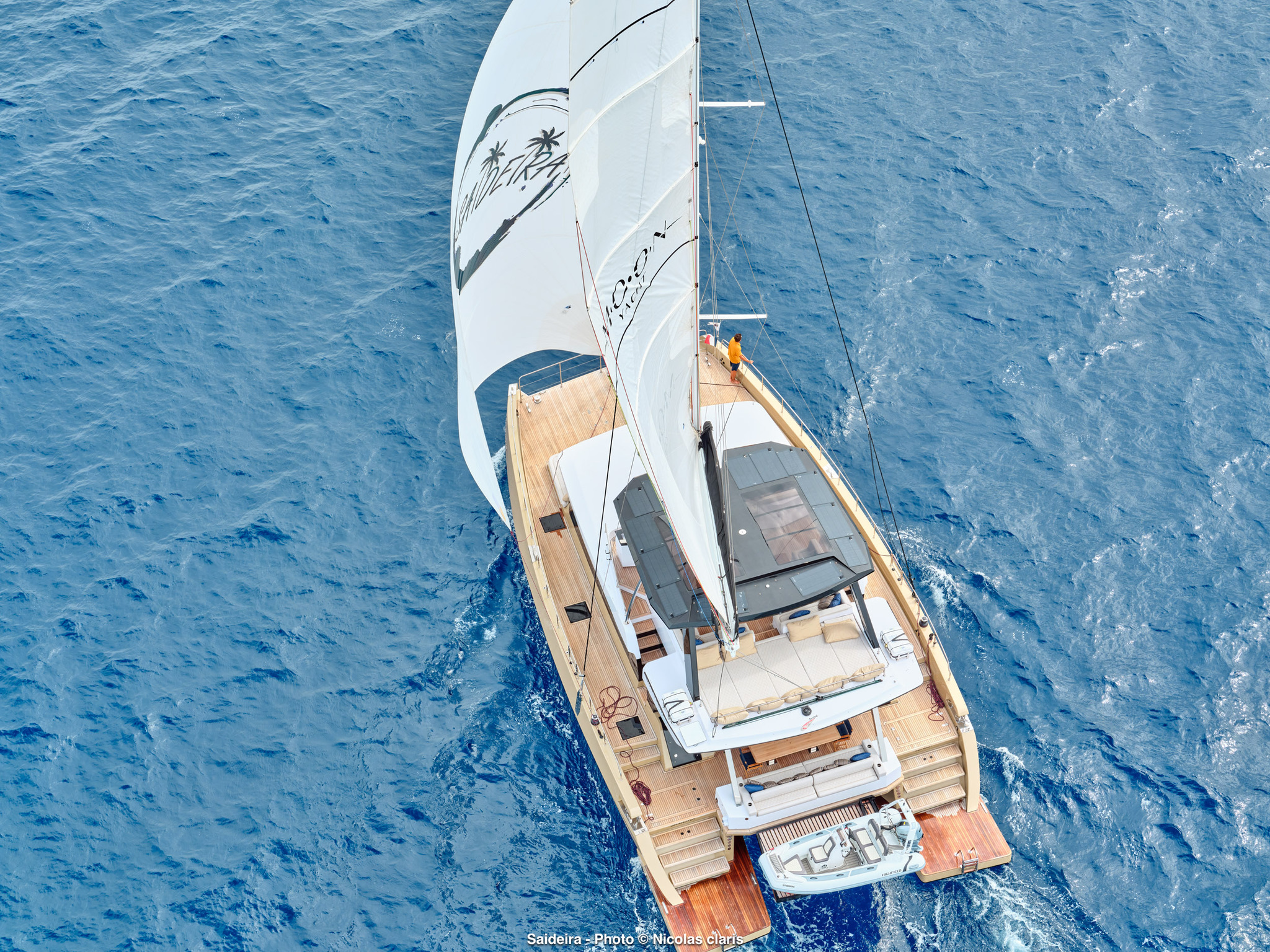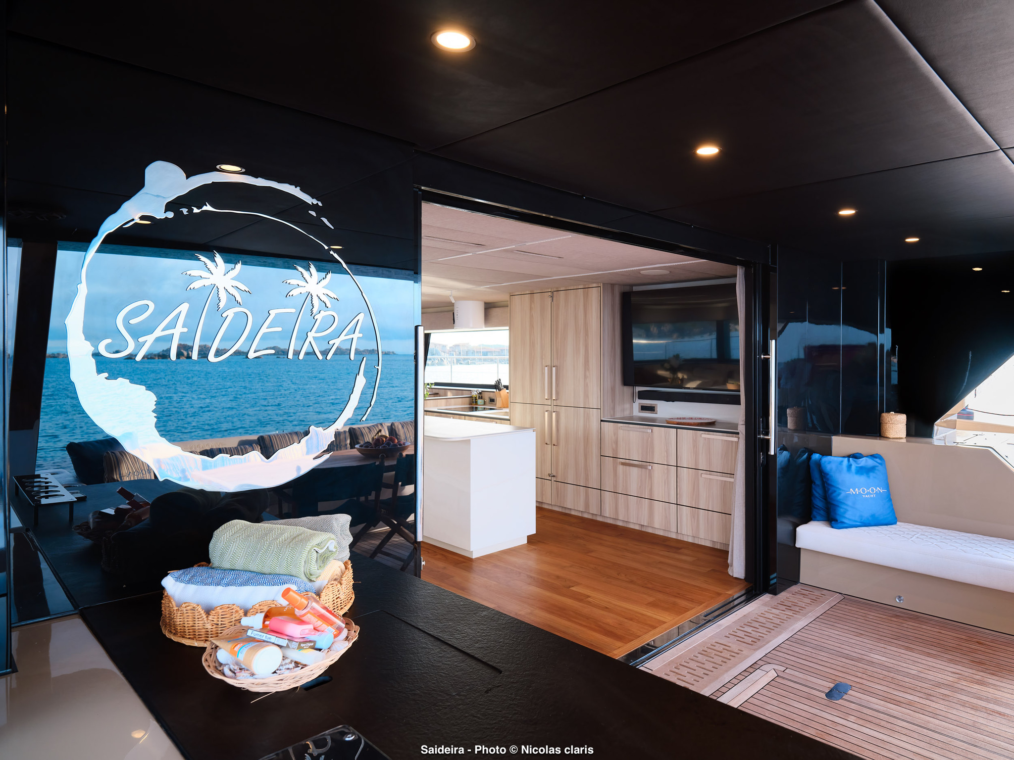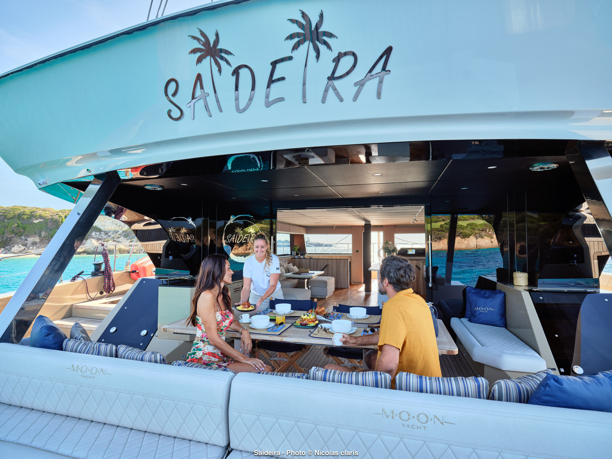 Saideira is a new, best-in-class 63'/19m Moon Yacht sailing catamaran available for luxury crewed charter in the Caribbean from December 2025 and the Mediterranean from June 2026. This yacht features four ensuite guest cabins and four spacious living areas to host guests in modern comfort. Saideira is equipped with the latest sailing gear, battery technology, and water toys to maximize your cruising experience. Your professional crew of 3 is dedicated to delighting you both onboard and on shore.